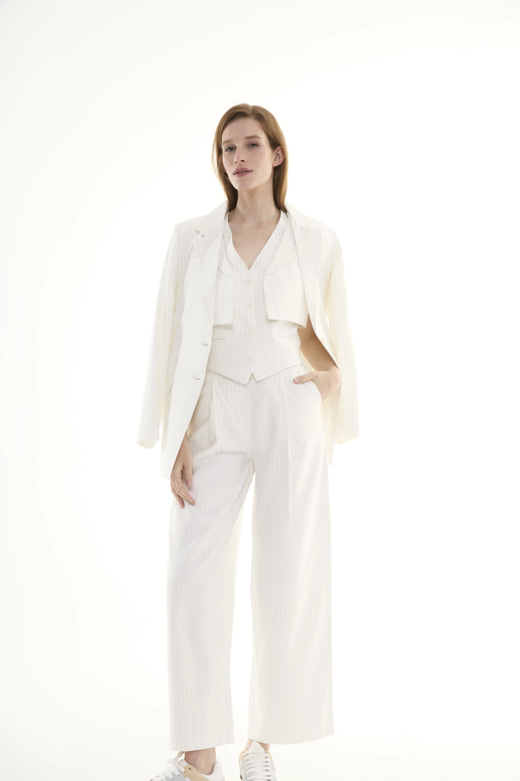 PANTALON VINCENZA DOBLE CINTURA TIZADO SASTRERO OFF WHITE