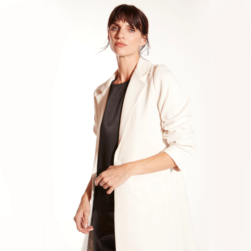 TELA: GAMUZA ELASTIZADA OFF WHITE FORRERÍA: ACETATO BLANCO LARGO DE PRENDA: 100 CM