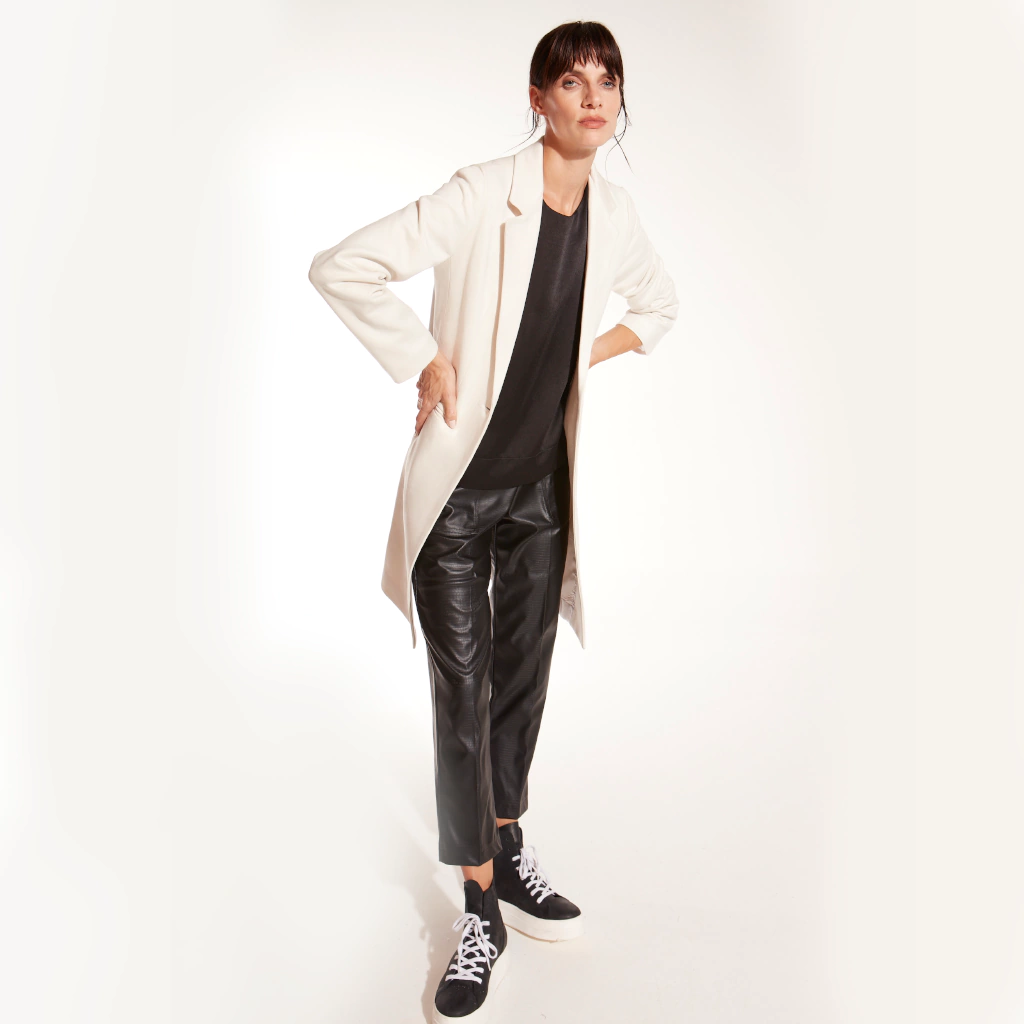 ABRIGO CUELLO Y SOLAPA LARGO CON BOLSILLO DELANTERO.